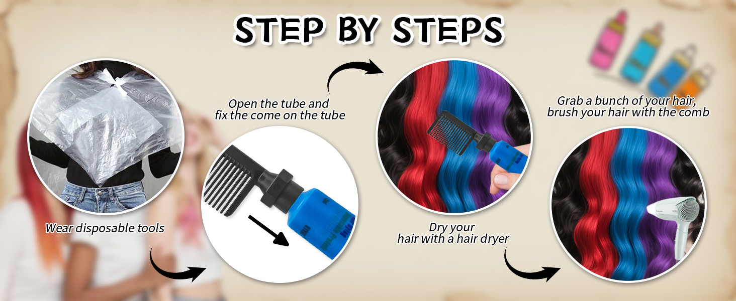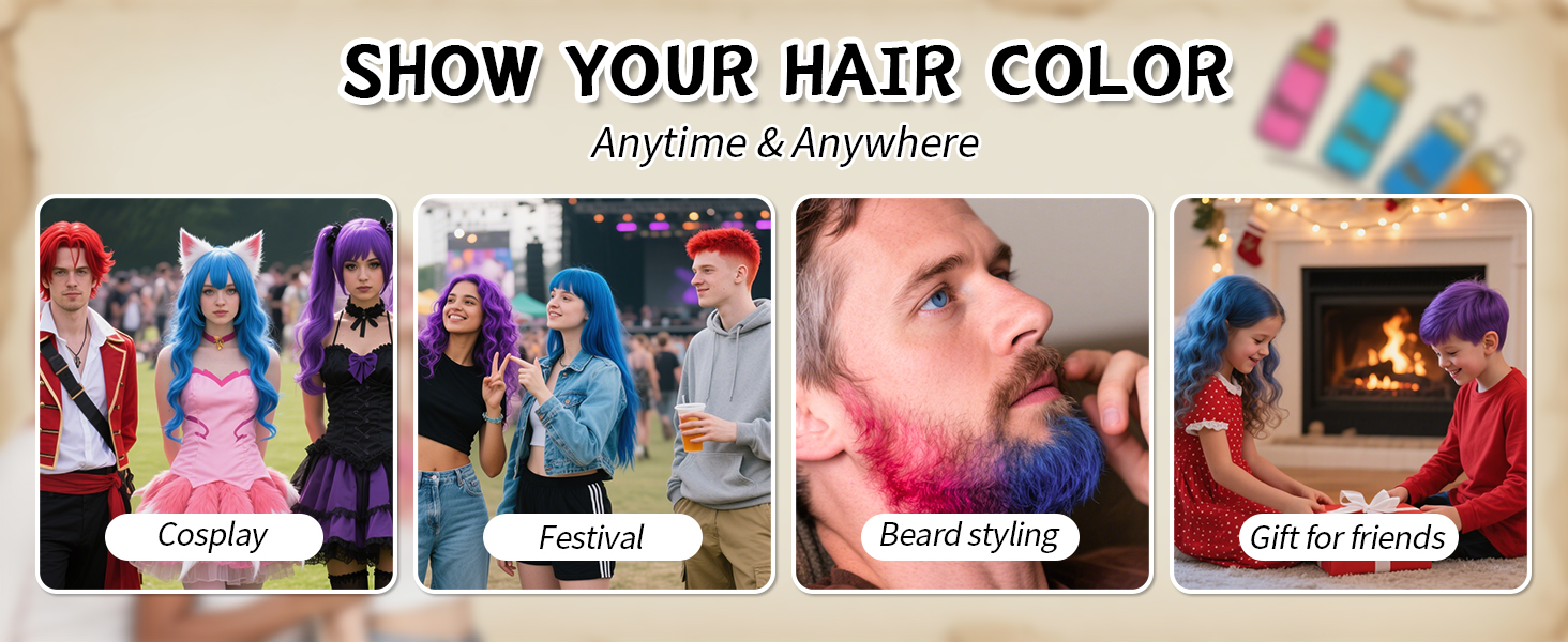 Byhoo 6PCS Blue Red Purple Temporary Hair Color for Dark Hair Dye, Cream Formula, Washable Hair Dye for Kids Girls Birthday Party Halloween Cosplay Hair Gift