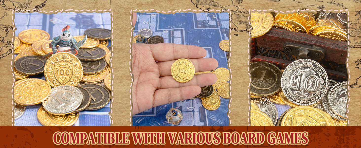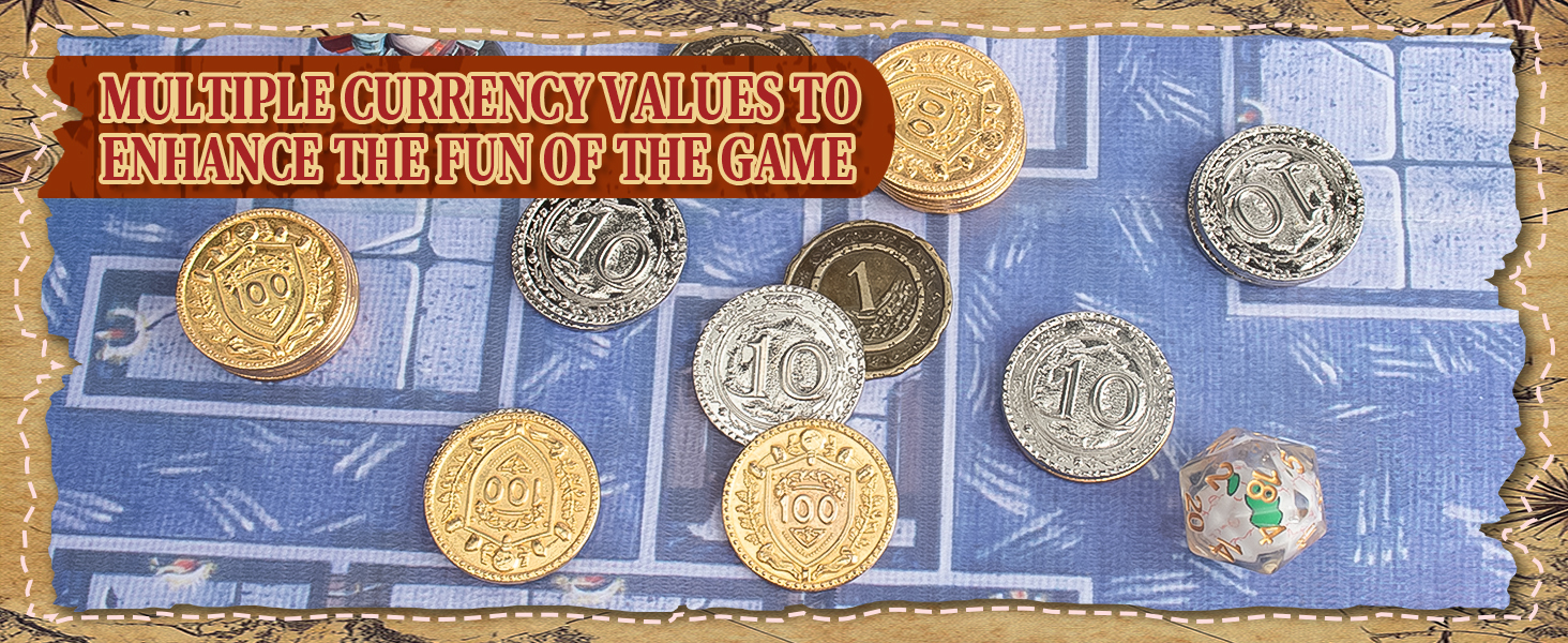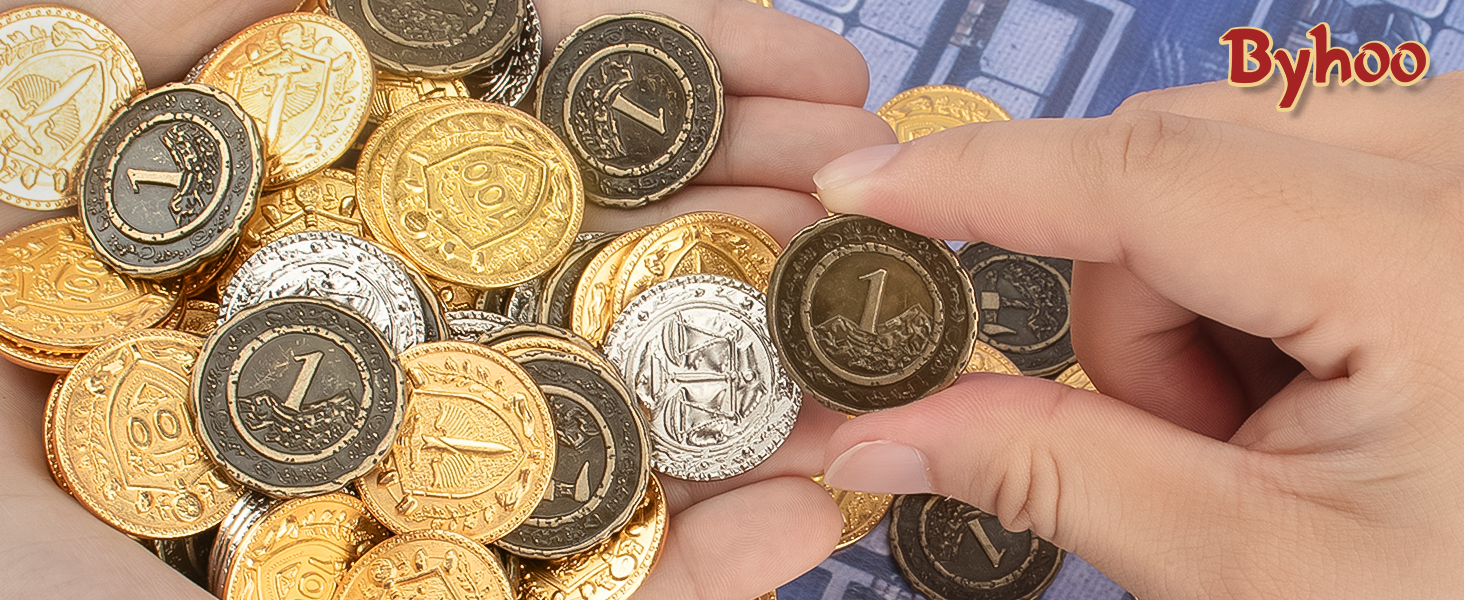 Byhoo Metal DND Coins, 1.2" Gold Silver Copper Tokens with Face Value for Board Game and Tabletop RPG, Fantasy Metal Coins for Pirate Game Party Cosplay