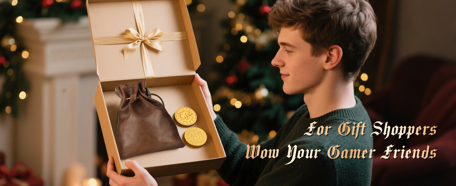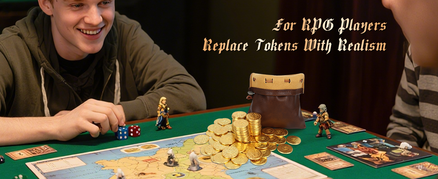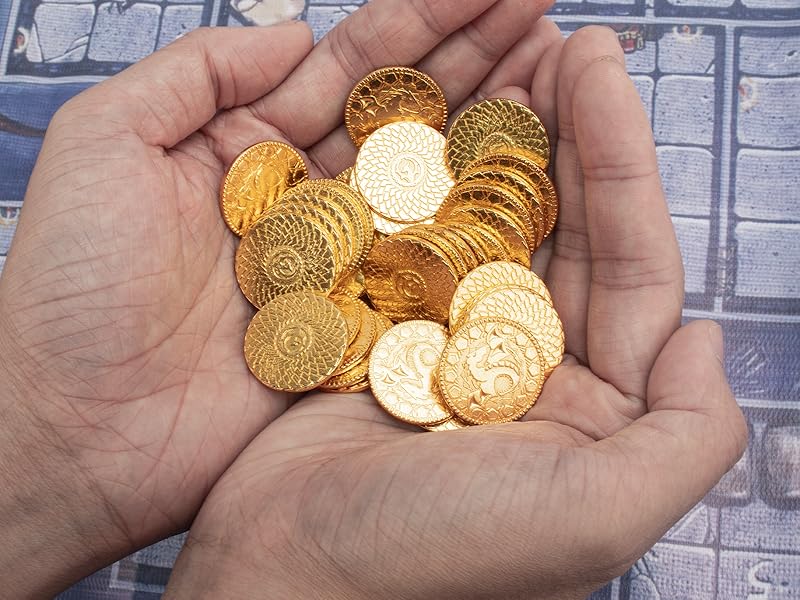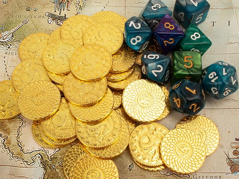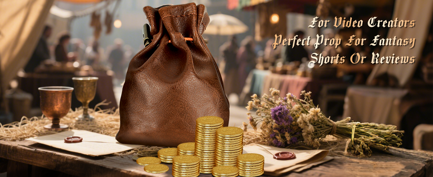 50 PCS DND Fantasy Metal Gold Coins & Leather Pouch for Dungeons & Dragons Novelty Tabletop RPG Board Games Tokens Treasure Coins for Party Tablelap Games Accessories Addons Medieval Game