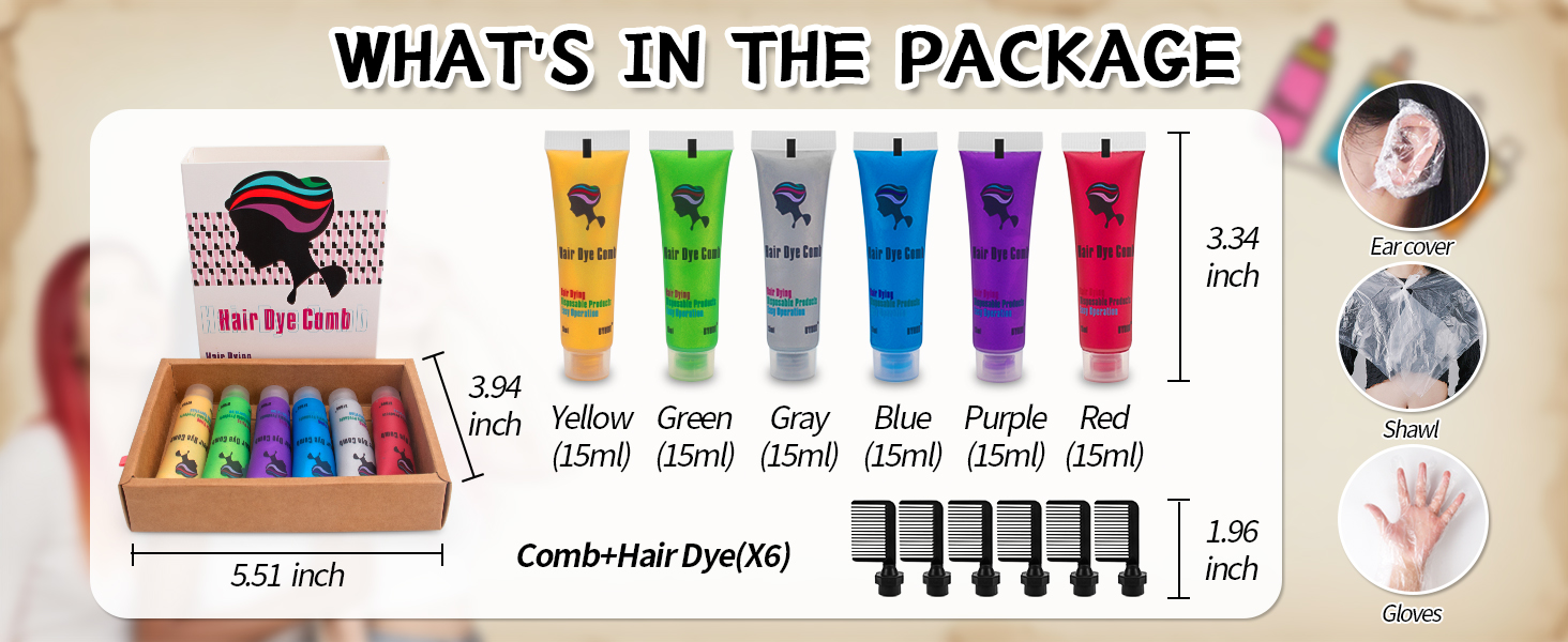 Our hair dye is made with non-toxic, allergen-free, water-soluble ingredients that are safe for both hair and skin. It washes out easily with shampoo, leaving no residue or damage. Each set comes with disposable gloves and a protective shawl to keep your hands and clothes clean while styling.