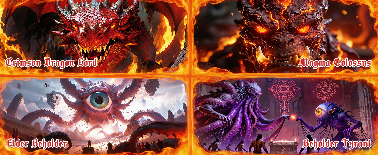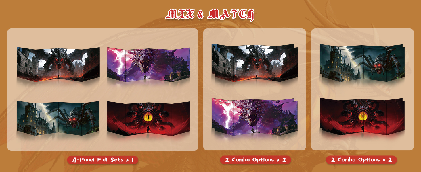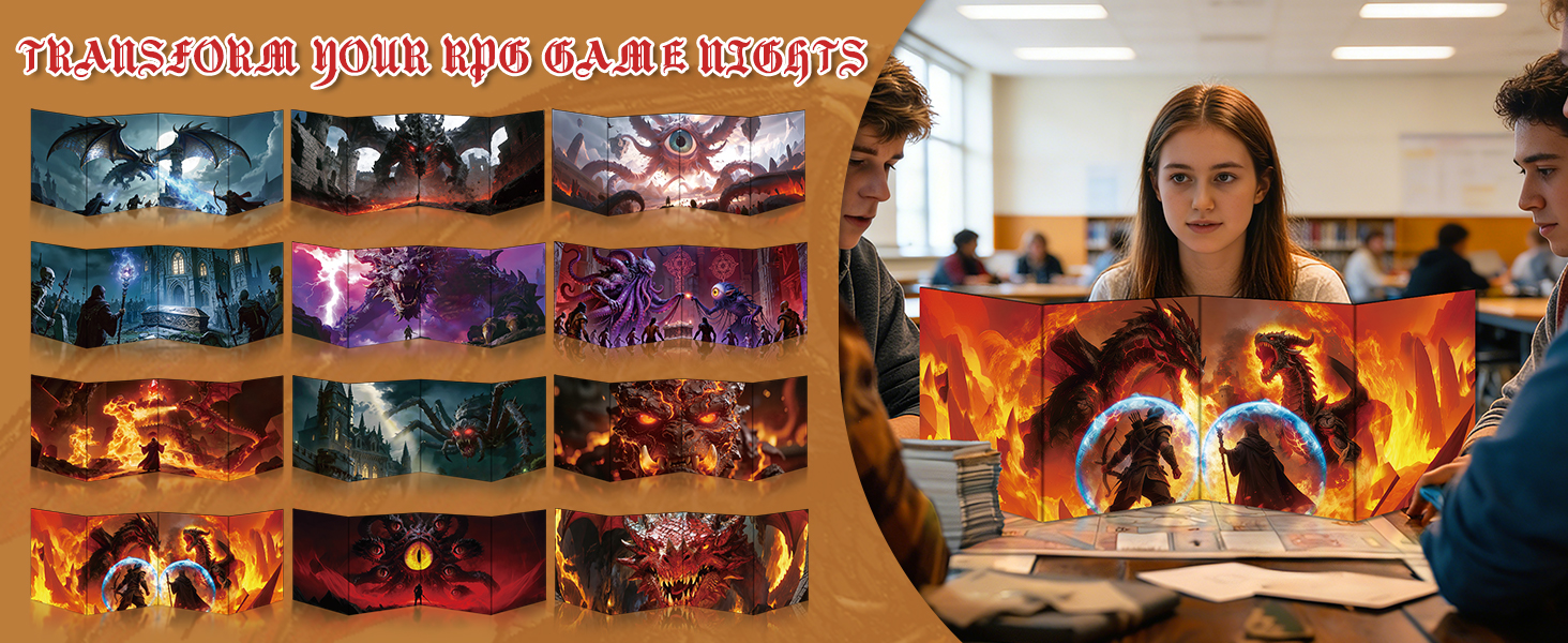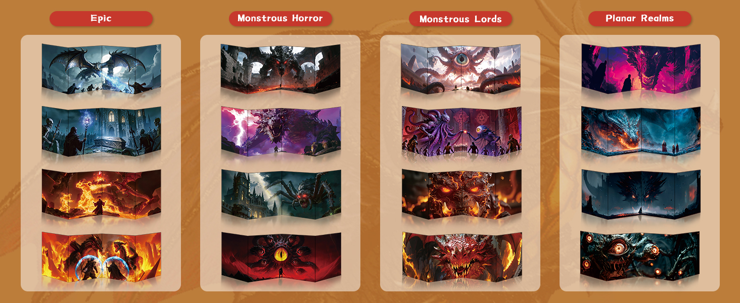 Byhoo DM Screen with Immersive Monstrous Lords Themes - Premium DM Screen 5e for D&D, Waterproof Reusable Surface, Tri-Fold Portable A4 Size Compatible with 5E Rules